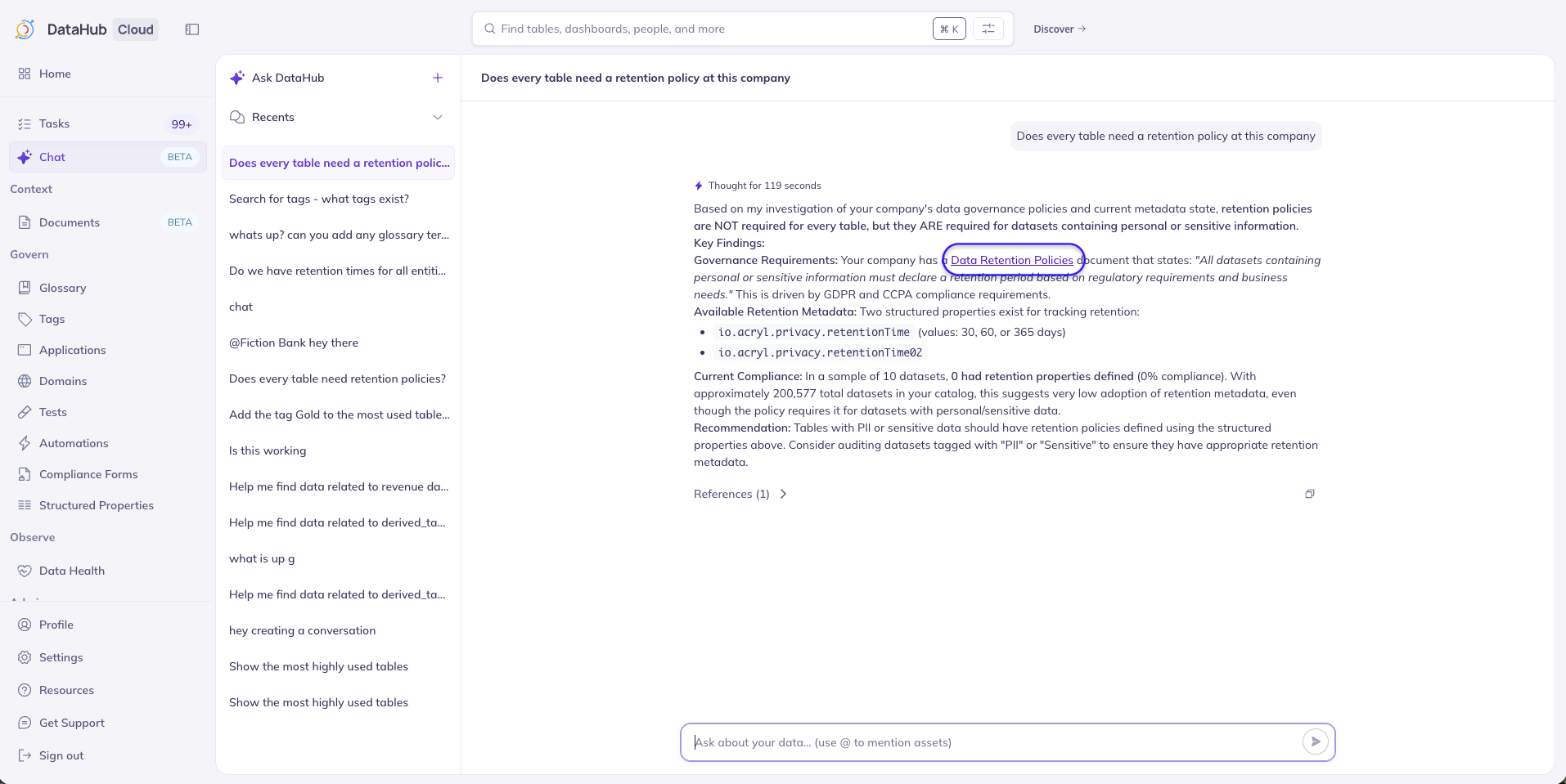 Note: Ask DataHub is available in DataHub Cloud only.