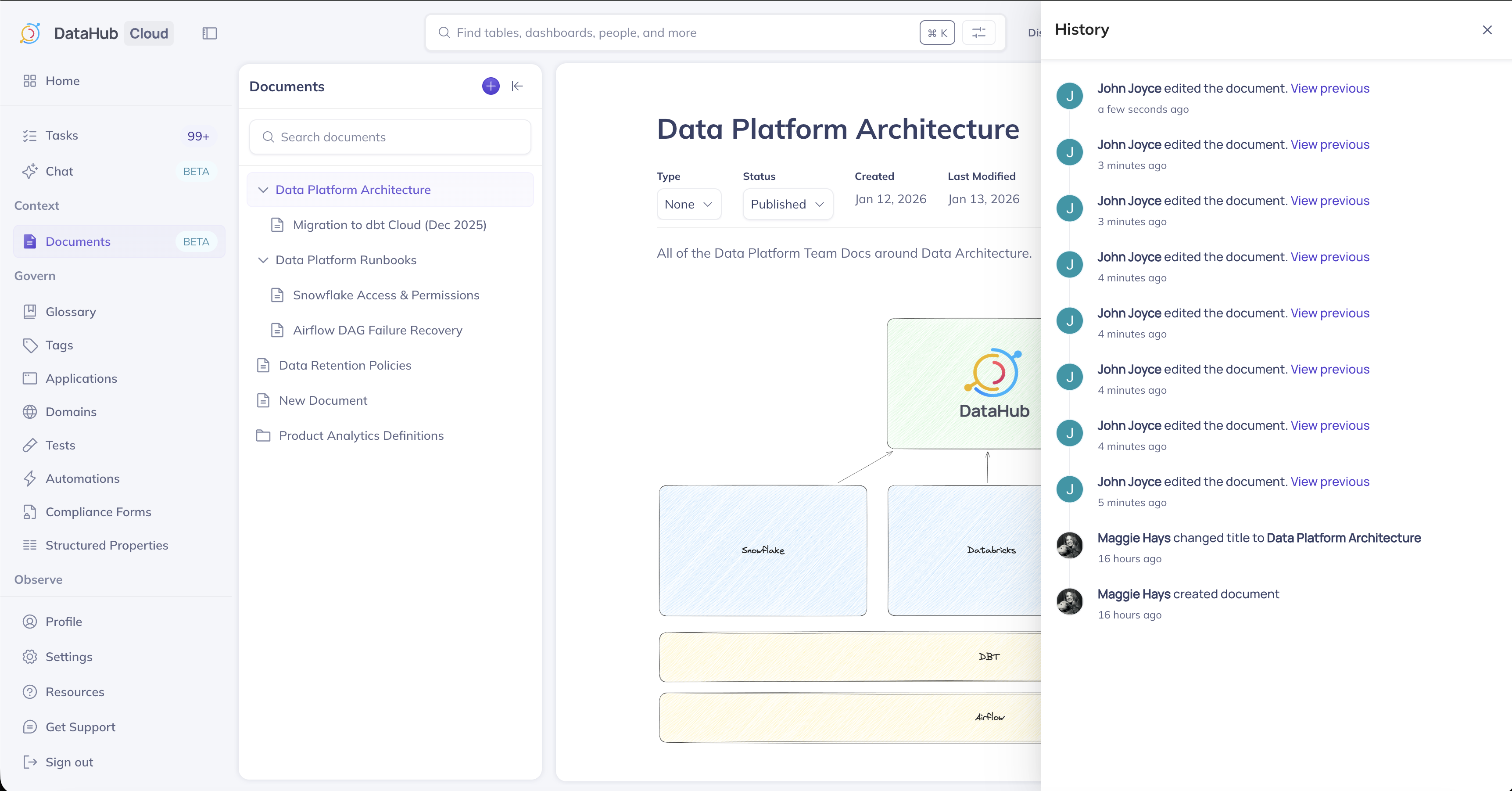 Context Documents are first-class citizens in DataHub. You can: