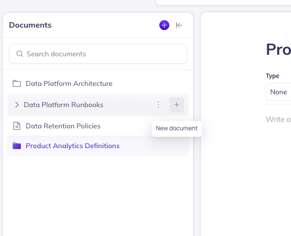 Context Documents let you capture tribal knowledge in DataHub. With Context Documents, you can create runbooks, FAQs, process guides, decision logs, and more to capture curated organizational context.